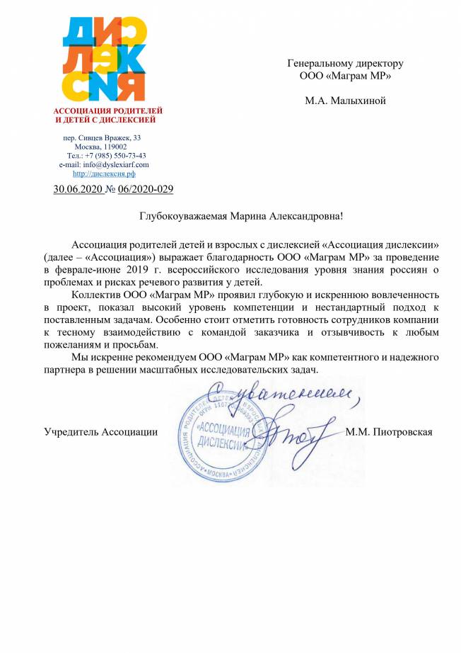Хочется особо отметить не только профессионализм сотрудников, но и... готовность коллектива «Magram Market Research» идти на встречу высказываемым нами предложениям.