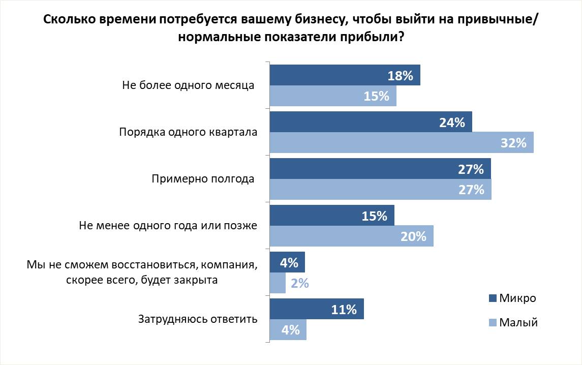 54% малых и микро-компаний РФ надеются восстановить прибыль за полгода и ранее