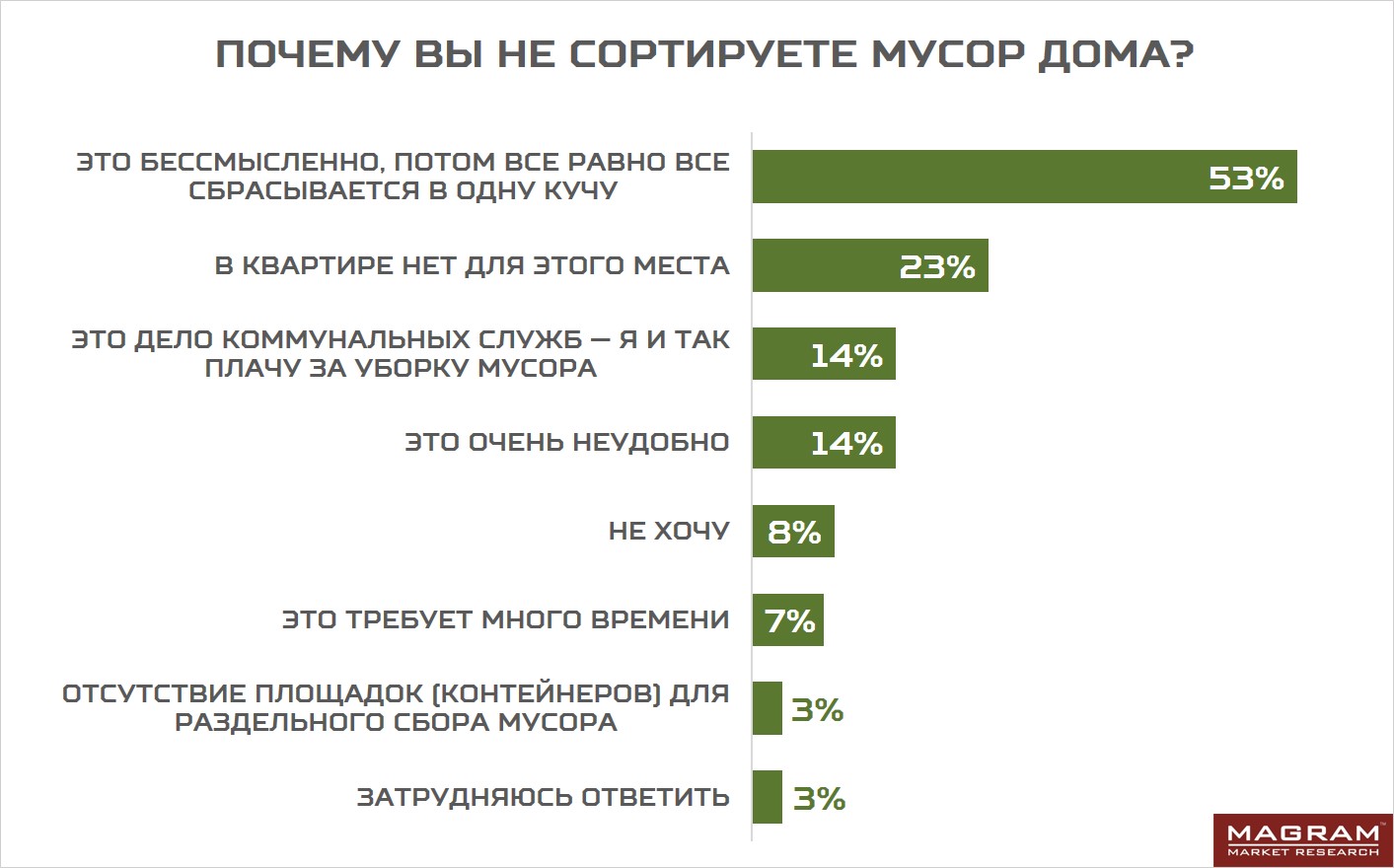 • 53% считают, что это бессмысленно, т.к. потом весь мусор все равно сбрасывается «в одну кучу»;