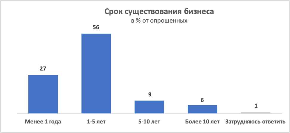 Большинство участников опроса (83%) владеют бизнесом не больше пяти лет.